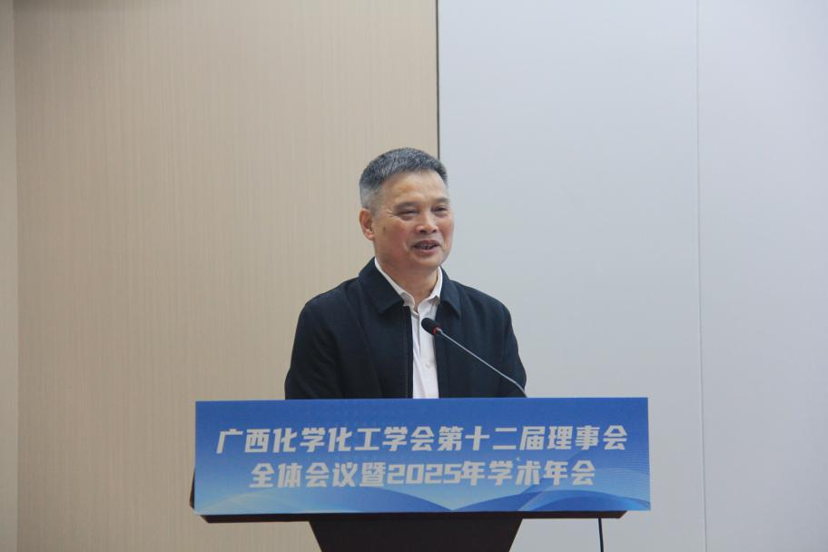 本次会议分为全体理事会议和学术年会两个阶段进行。在全体理事会议阶段,与会理事认真听取了理事长黄尚顺同志做的《广西化学化工学会2025年工作总结》报告。报告全面梳理了2025年学会在党组织建设、学术活动开展、科技咨询服务、科普与化学竞赛等方面取得的显著成绩,并对2026年未来工作重点进行了规划与展望,为学会下一步发展指明了方向。